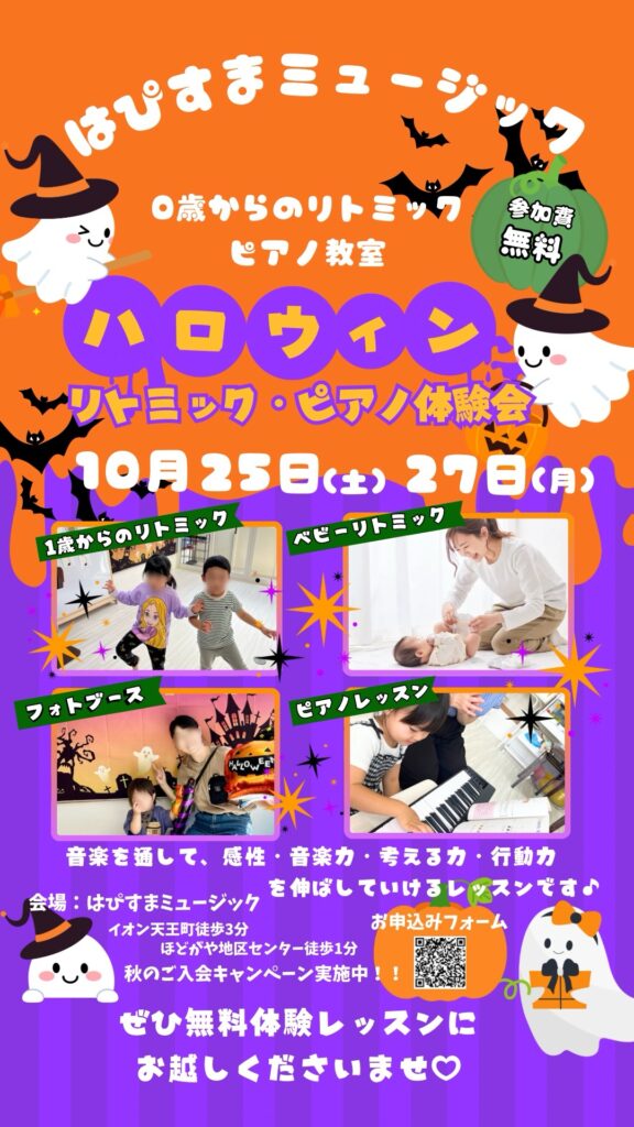 天王町 星川のリトミック・ピアノ教室 ハロウィンリトミック体験会のお知らせ